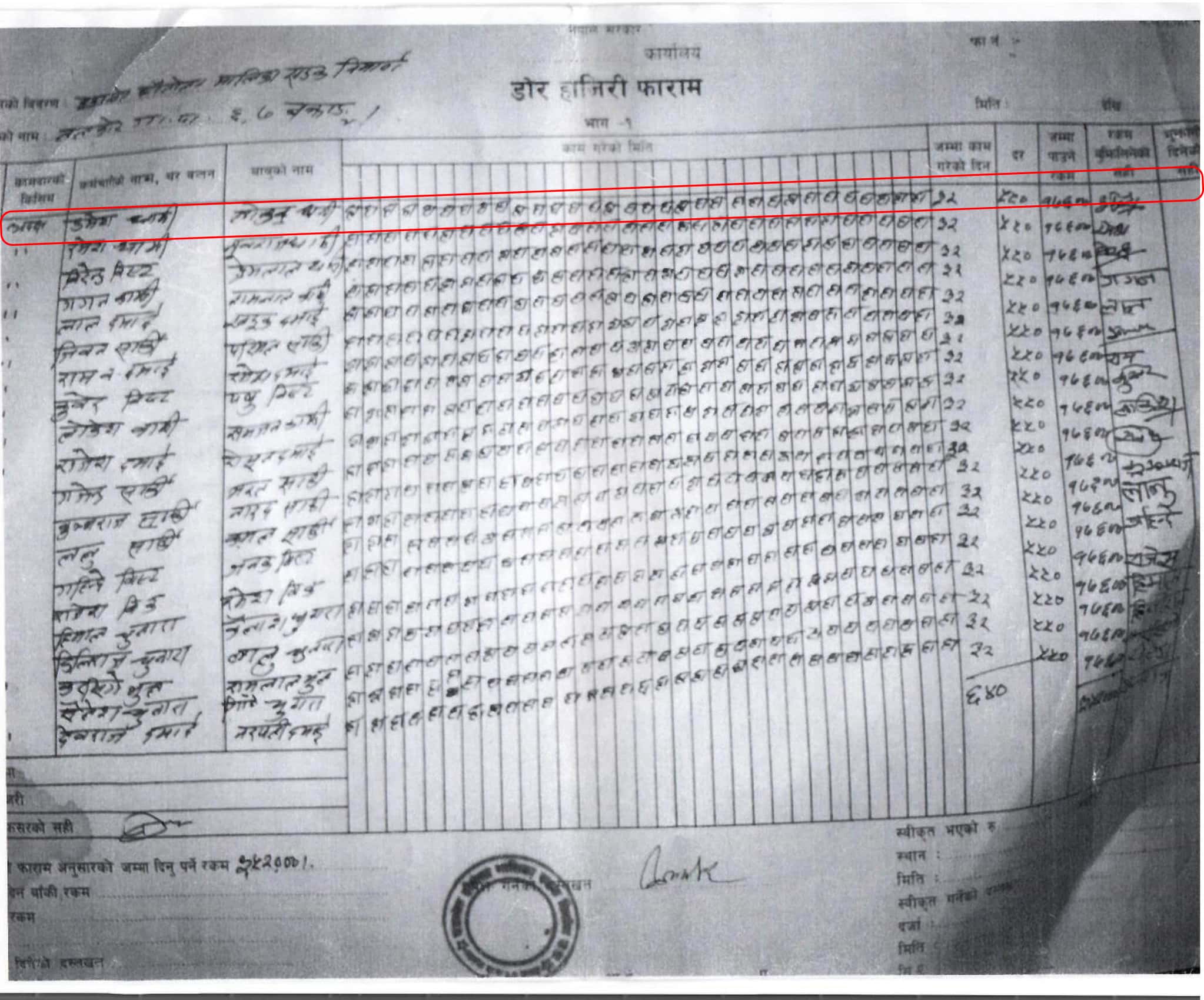 Kaile Chanara was another name to be listed in the workers’ attendance. Kaile’s neighbor, too, was flabbergasted to see Kaile’s name and signature on the document as it has been four years since Kaile has left the village.